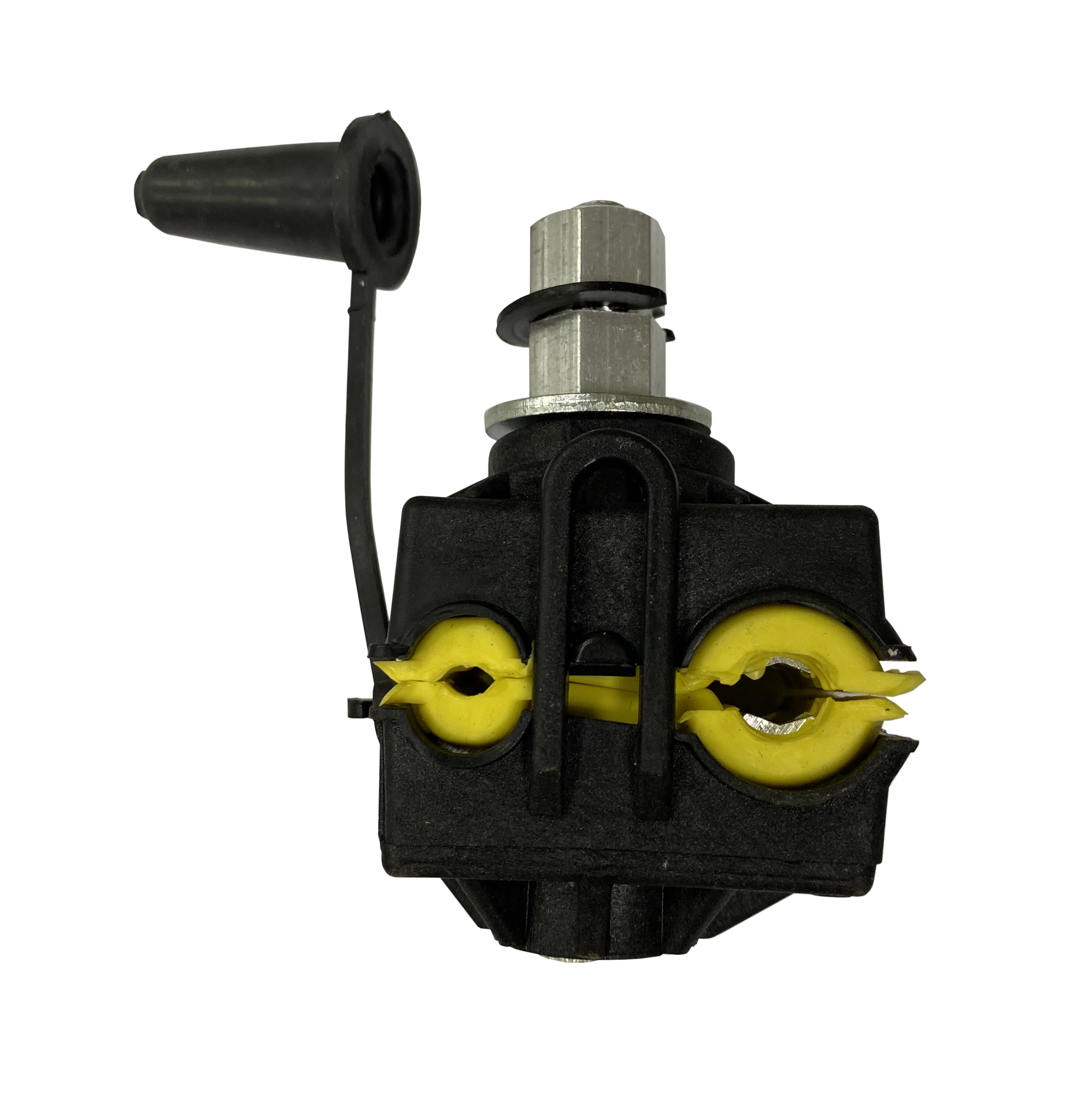 Предназначен для электрического соединения СИП и неизолированных проводов ВЛ. Контакт с жилой СИП обеспечивается прокалыванием изоляции. Контроль усилия затяжки болта осуществляется применением срывной головки. Корпус зажима изготовлен из атмосферостойкого пластика.